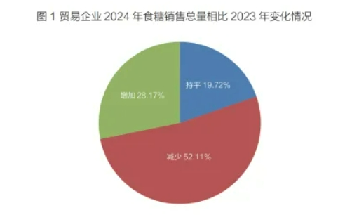 2、贸易企业2024年食糖销售总量相比2023年变化情况