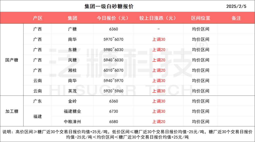 2.2024/25榨季截至1月31日,泰国累计甘蔗入榨量为5111.94万吨,同比增加263.83万吨,增幅5.44%;甘蔗含糖分12.14%,同比增加0.35%;产糖率为10.296%,同比增加0.416%;产糖量为526.34万吨,同比增加47.33万吨,增幅9.88%。