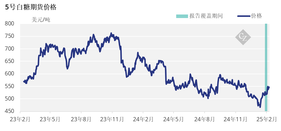 5 号精制糖期货的2025年3月合约上周五以549.9美元/吨的价格到期,此后在540美元之上交易。