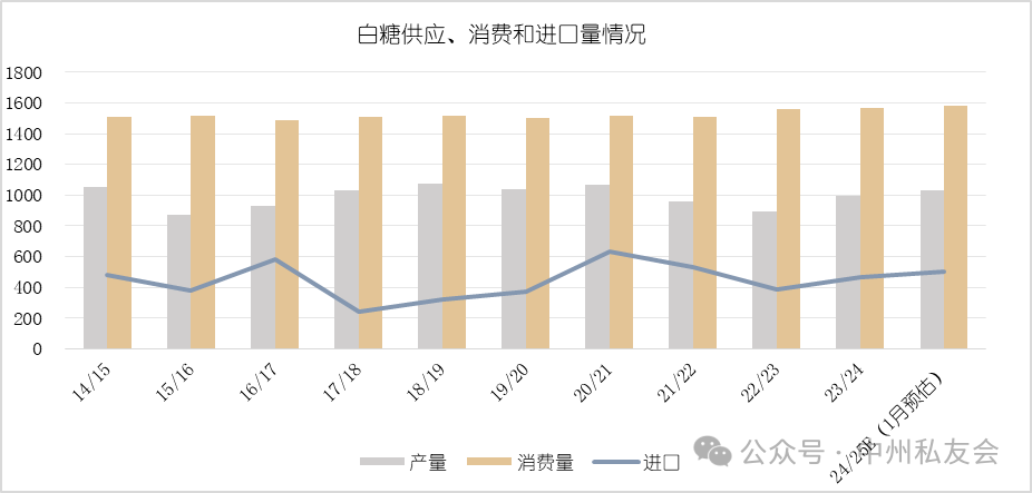 我国国内白糖供需一直处于供不足需的格局,国内年白糖消费量相对稳定,保持在1500万吨上下,三分之二由国产糖提供,另外三分之一需求来自进口,进口依赖度达到30%之上,属于偏高水平,年度固定的进口需求就产生了白糖跨市场套利的流动性。