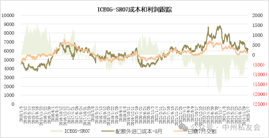 正向套利(买ICE原糖,卖郑糖):进口成本显著低于郑糖价格。