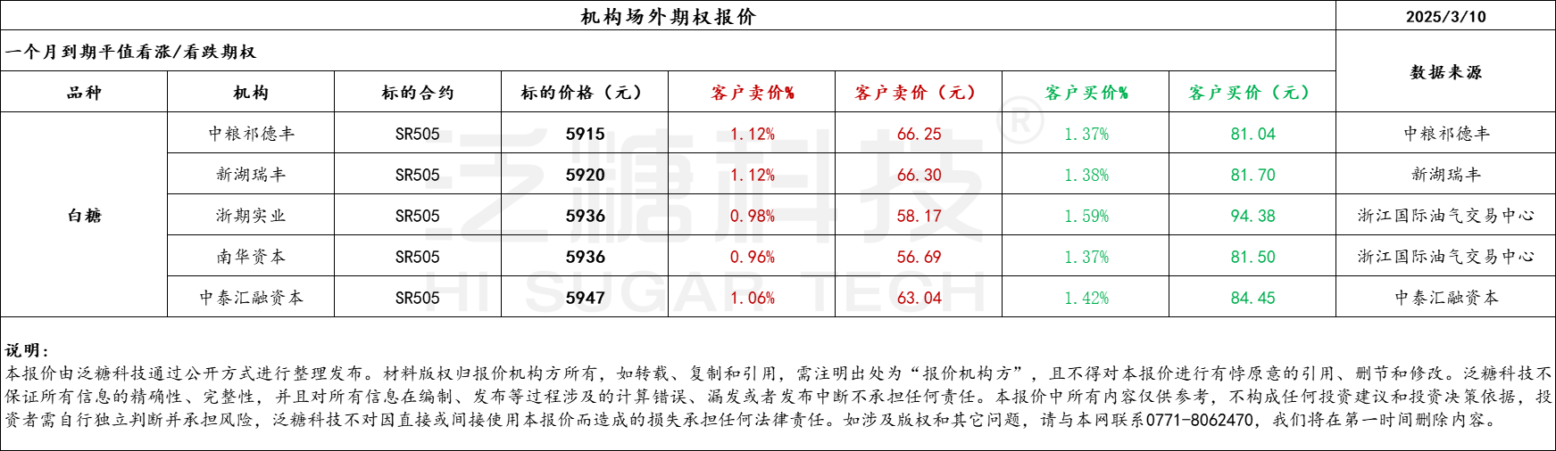 2025年3月10日,机构场外期权报价如下: