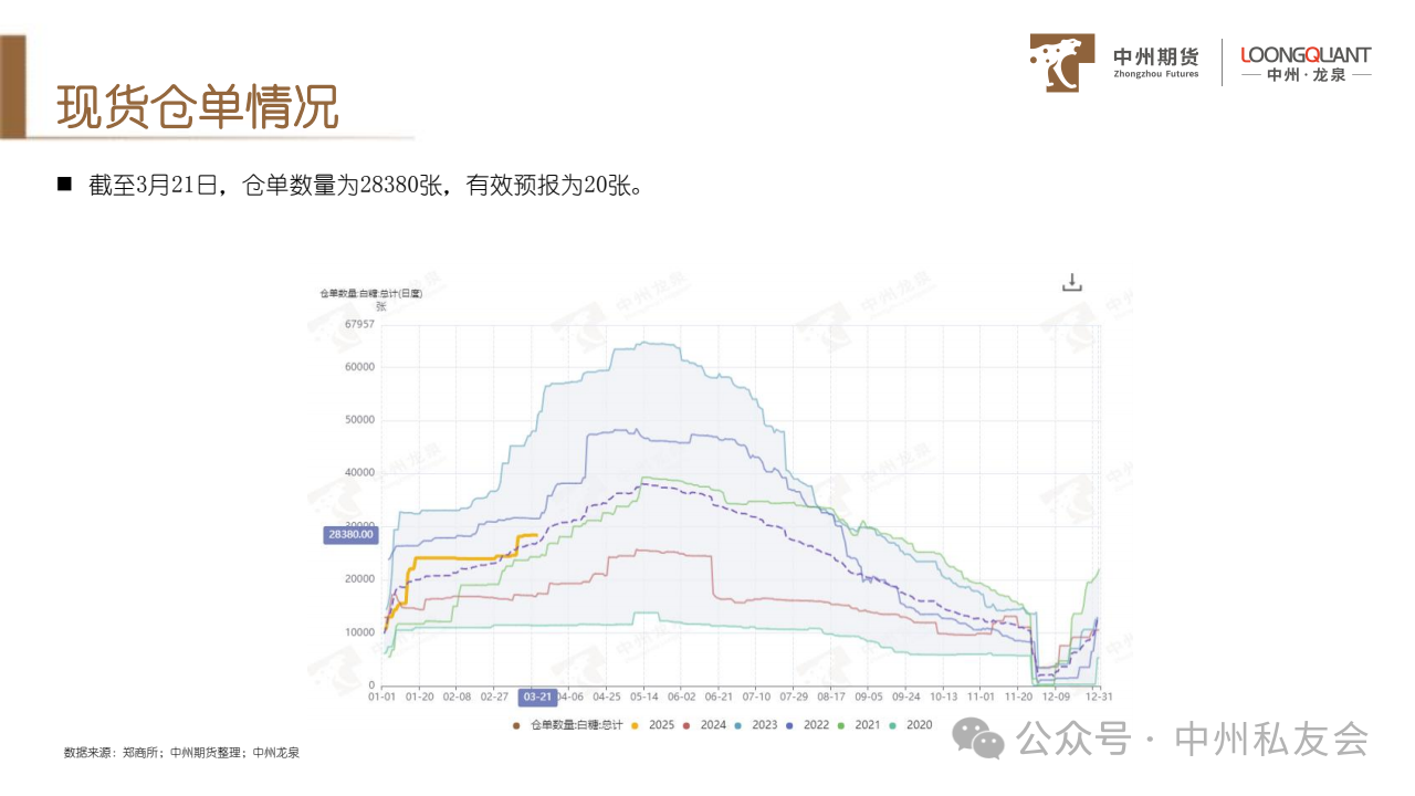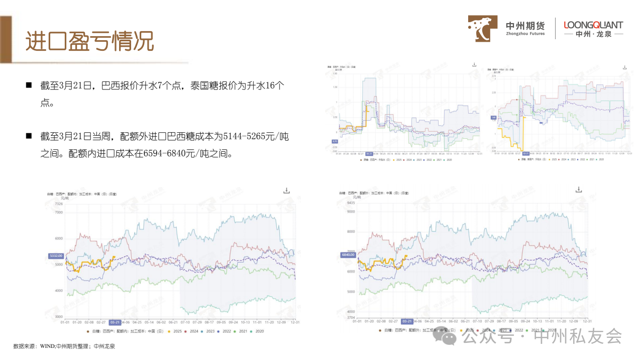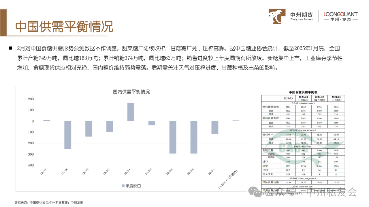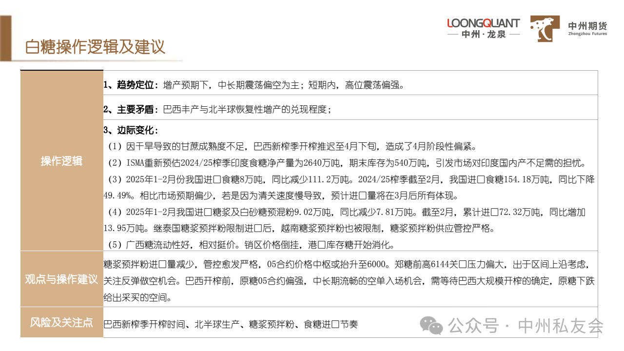 (3)2025年1-2月份我国进口食糖8万吨,同比减少111.2万吨。2024/25榨季截至2月,我国进口食糖154.18万吨,同比下降49.49%。相比市场预期偏少,若是因为清关速度慢导致,预计进口量将在3月后所有体现。