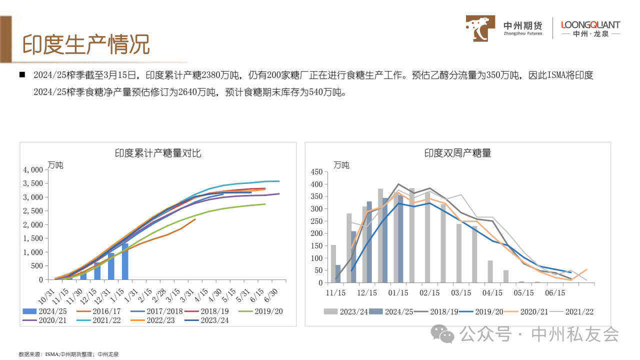 (2)ISMA重新预估2024/25榨季印度食糖净产量为2640万吨,期末库存为540万吨,引发市场对印度国内产不足需的担忧。