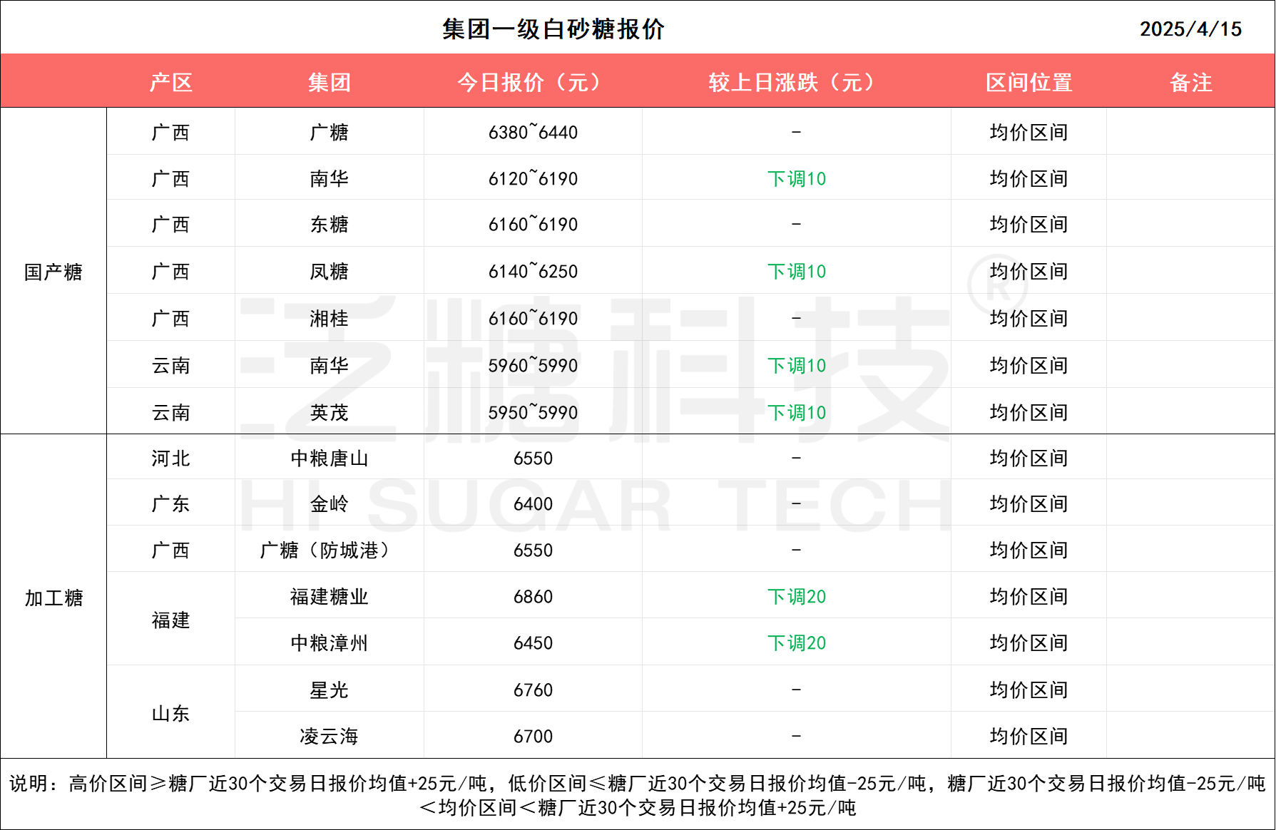 今日广西白糖现货成交价6074元/吨,下跌16元/吨;广西制糖集团报价6120~6250元/吨,部分下调10元/吨;云南制糖集团报价5950~5990元/吨,下调10元/吨;加工糖厂主流报价区间6400~6860元/吨,部分下调20元/吨。制糖集团今日报价小幅下调,贸易商及下游终端保持观望,以随采随购为主,现货整体成交一般。