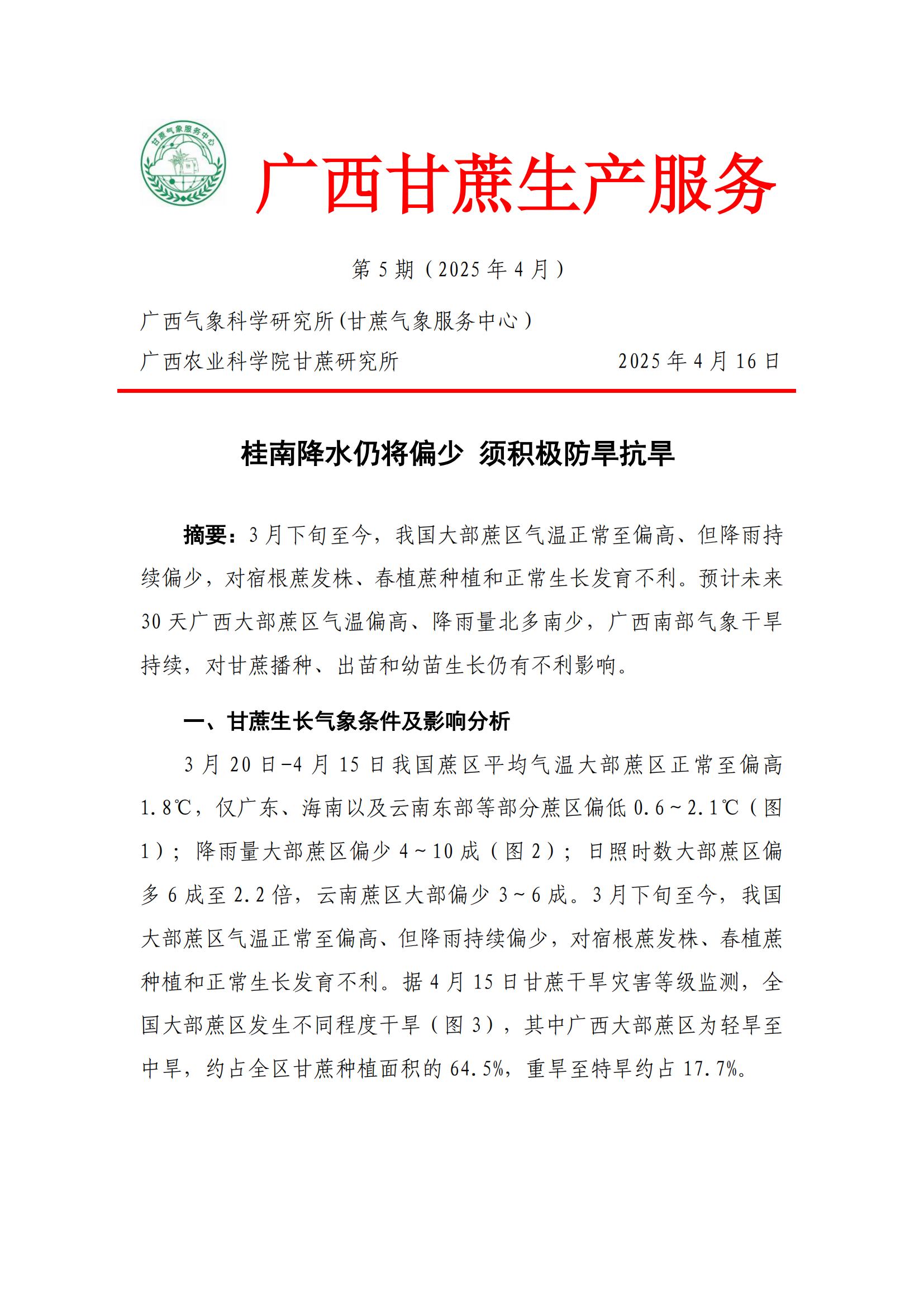 蔗区气象:桂南降水仍将偏少 须积极防旱抗旱(2025年4月)