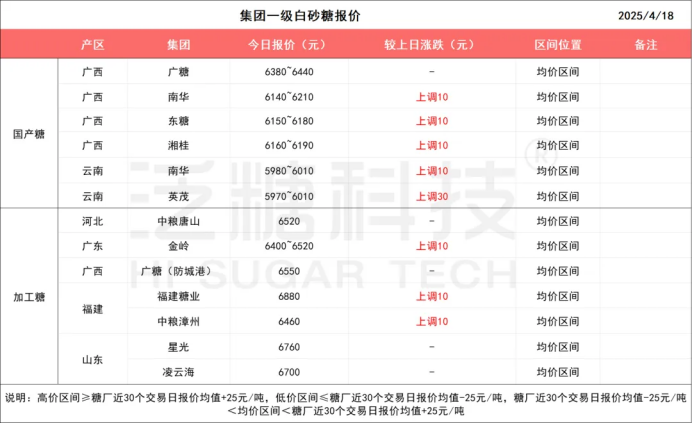 今日广西白糖现货成交价6120元/吨,上涨22元/吨;广西制糖集团主流报价区间为6140~6210元/吨,上调10元/吨;云南制糖集团报价区间为5970~6010元/吨,上调10~30元/吨;加工糖厂主流报价区间6400~6880元/吨,部分上调10元/吨。消费淡季下,贸易商及下游终端仍以随采随用为主,现货整体成交一般。