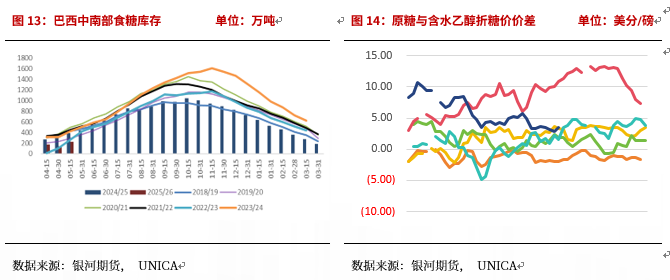国际方面,考虑到巴西即将迎来供应高峰,预计全球库存即将进入累库阶段,短期贸易流偏紧将有所缓解,预计原糖整体维持震荡运行,短期则根据阶段性生产数据影响盘面节奏,后续还需关注巴西生产进度及实际增产幅度。