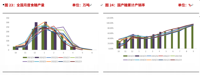 国内方面,产销速度偏快、去库前置。考虑到糖浆进口政策进一步收紧,产需缺口如何补足成为市场焦点。考虑到进口糖当前并未大量进入国内市场,预计对糖价有所支撑。而糖价受到原糖价格偏弱、进口糖价格下跌的拖累,预计上行空间有限,短期糖价维持震荡走势。
