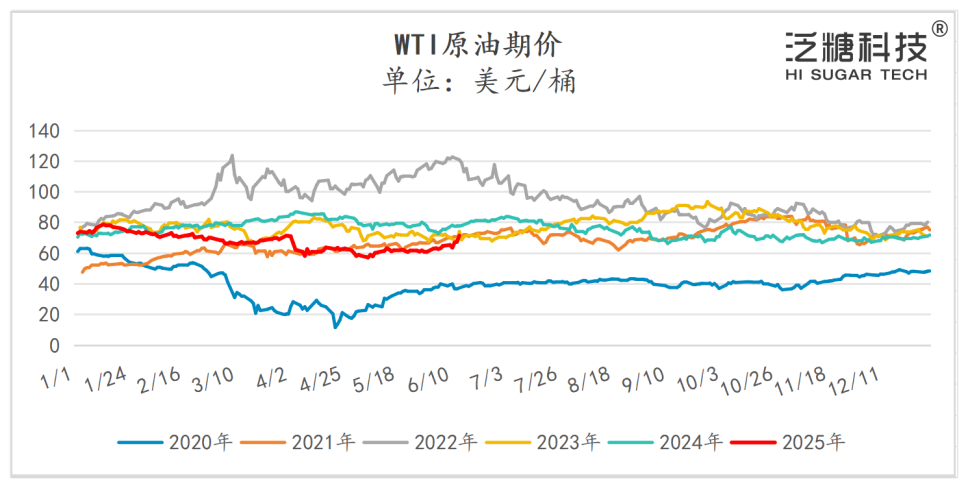 受外盘下行、远期进口供给压力施压,本周整体SR2509合约延续下行态势,周四一度触及近9个月价格低点5609元/吨;周五受中东局势升温、国内商品市场普涨影响,郑糖小幅跟随、期价止跌回升,最终报收于5664元/吨。现阶段国内糖市期现高基差与远期供给压力并存,郑糖以跟随外盘波动为主,短期需关注外盘走势及进口糖到港节奏对国内糖价的传导影响。