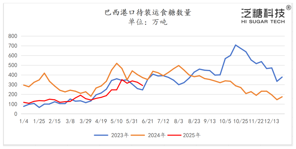 桑托斯港等待出口的食糖数量为187.33万吨,帕拉纳瓜港等待出口的食糖数量为66.45万吨。