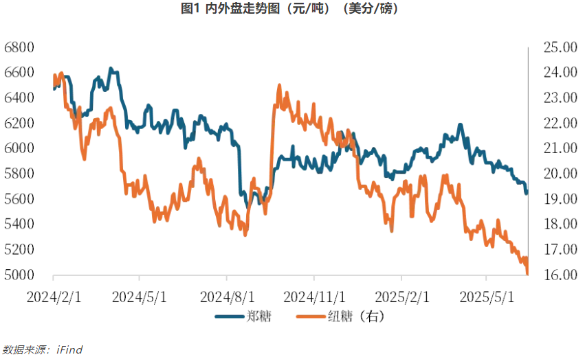 总结而言,对于国际市场来说,市场等到新的UNICA数据公布,预期5月下半月的数据糖醇比维持高位,单产亦有所恢复,数据偏空。短期内,原糖在跌破17美分后触发销区国家需求,点价频现。但盘面受制于巴西压榨高峰和泰国空单的压力,基本面缺少反弹驱动,下方16美分为乙醇平价,跌破此价格将触发糖醇比降低的阈值。盘面整体以16-17.5美分偏弱震荡为主。