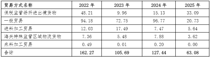 1-5月,我国以保税监管场所进出境货物的方式累计进口食糖33.09万吨,占比52.45%。其余进口方式及占比分别为:一般贸易20.73万吨,占比32.86%;进料加工贸易5.64万吨,占比8.94%;海关特殊监管区域物流货物3.62万吨,占比5.75%。