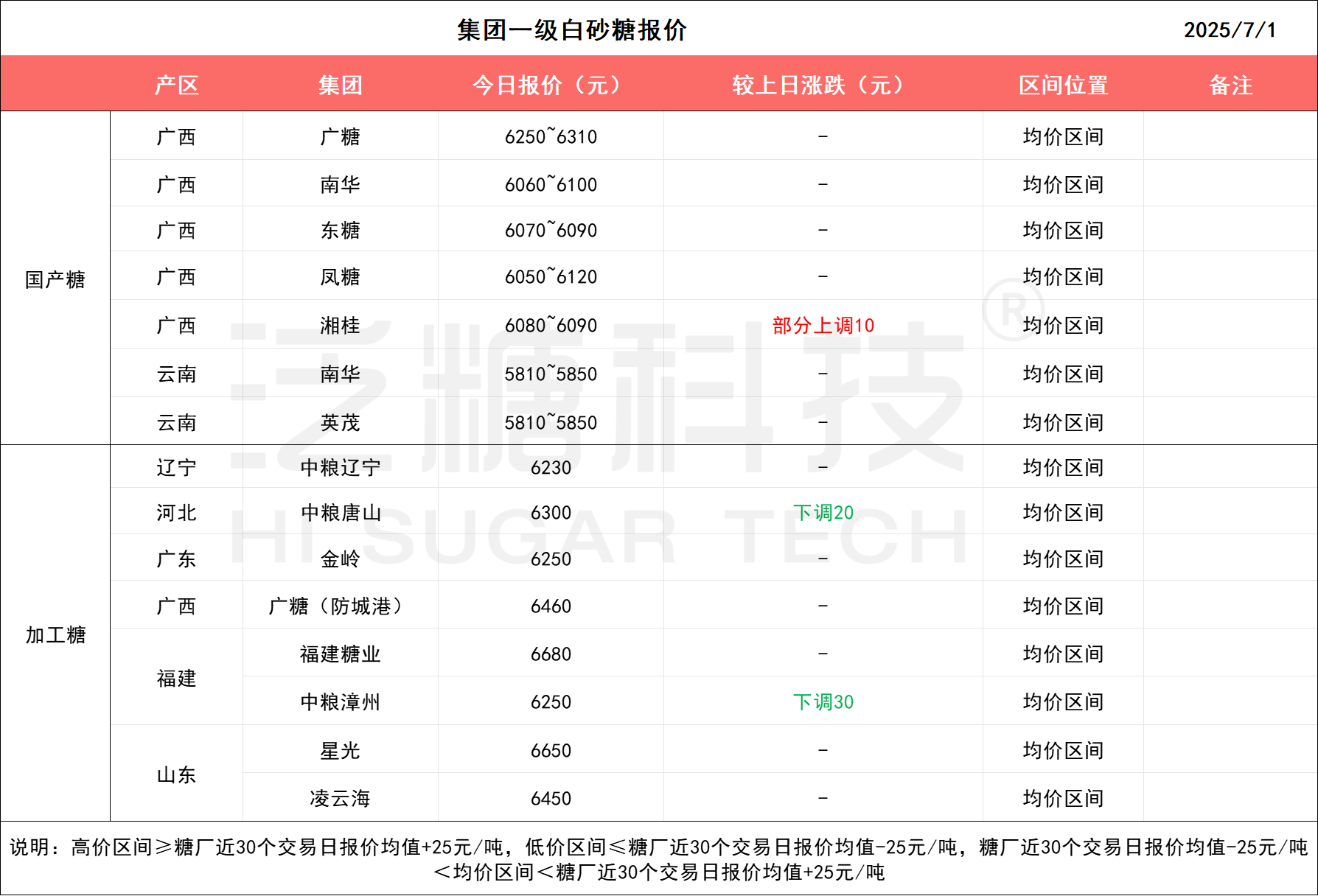 今日广西白糖现货成交价5993元/吨,下跌17元/吨;广西制糖集团报价6050~6120元/吨,个别上调10元/吨;云南制糖集团报价5810~5850元/吨,报价持稳;加工糖厂主流报价区间6230~6680元/吨,少数下调20~30元/吨。前期阶段补库需求已基本释放,当前市场交投氛围回归平淡,终端客户及贸易商以随采随用为主,整体成交一般。