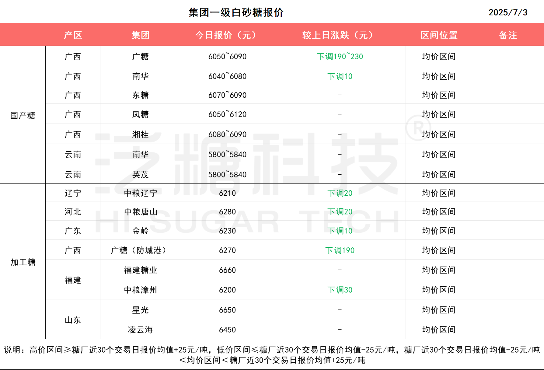 今日广西白糖现货成交价5991元/吨,上涨25元/吨;广西制糖集团报价6040~6120元/吨,个别下调10元/吨;云南制糖集团报价5800~5840元/吨,报价持平;加工糖厂主流报价区间6200~6660元/吨,多数下调10~30元/吨。在原糖持续走弱的背景下,加工糖厂调价意愿较强,云南糖与加工糖的性价比优势逐步显现,较广西糖成交偏好,但市场观望情绪较浓,整体成交一般。
