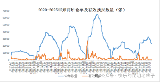 仓单:本周郑商所仓单数量至周五时为22744张,比上周减少680张,有效预报为106张,比上周增加106张。