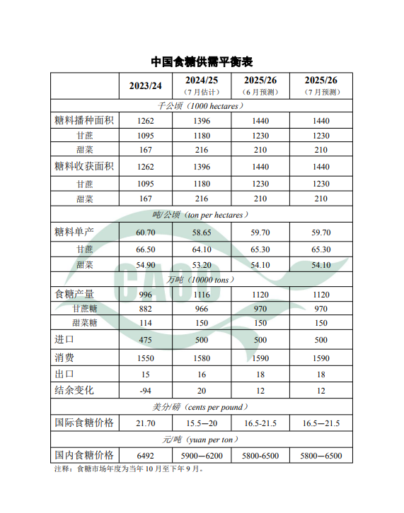 本月对2025/26年度食糖供需形势预测与上月保持一致。广西秋冬春连旱对甘蔗出苗和前期生长产生不利影响,甘蔗长势和株数较去年同期偏矮偏少。甜菜长势总体良好,但内蒙古产区近期降水偏多,易发生病虫害,需提前防治。国际方面,后期需继续关注巴西产糖进度和北半球糖料生长情况。