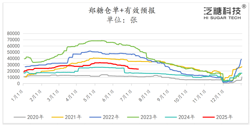 俄罗斯:截至5月底,俄罗斯联邦食糖总库存达到179万吨。相较于2024年同期的181万吨和2023年的151万吨,当前库存水平处于居中位置。截至6月1日,俄罗斯过去12个月的滚动食糖消费量约为570万吨。