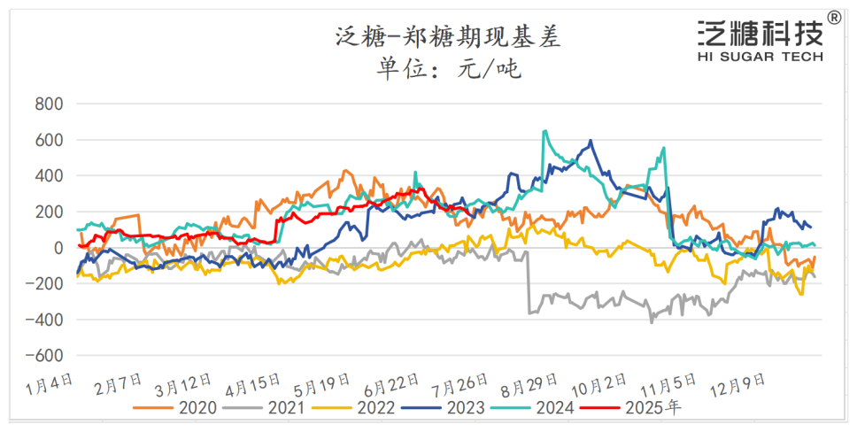 周初现货报价松动,市场观望情绪较浓;周后半段期现联动上涨,市场交投情绪有所回暖,因广西糖和云南糖价差走阔,价格较低的云南糖成交偏好,去库速度加快,现货整体成交尚可。