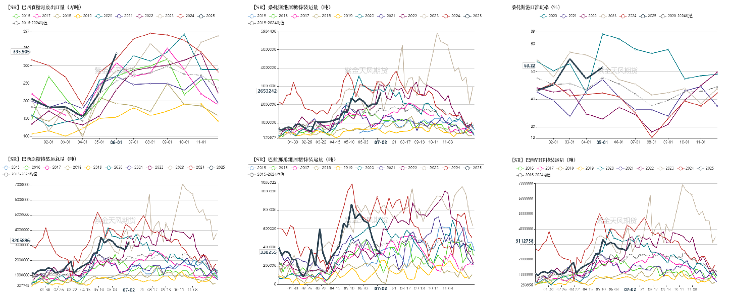 巴西进入高出口时间窗口期,6月出口量达到335.9万吨,处于同期最高水平。