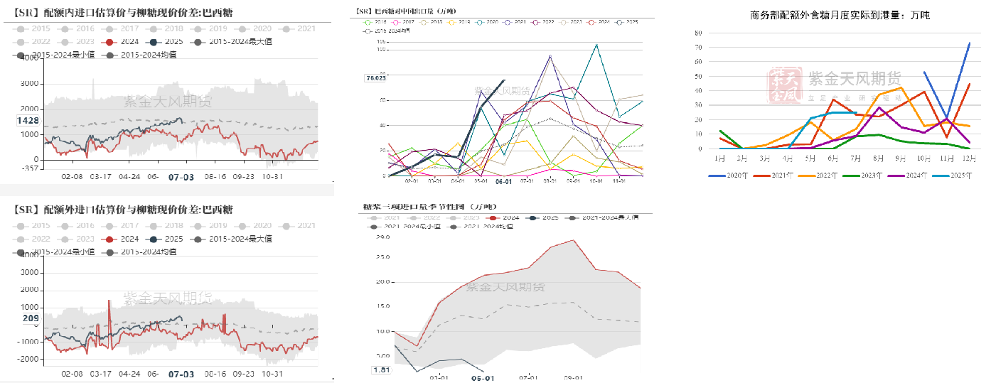 内外后期主要关注正套,主要驱动在于,进口糖放量后导致国内现货价格下行。