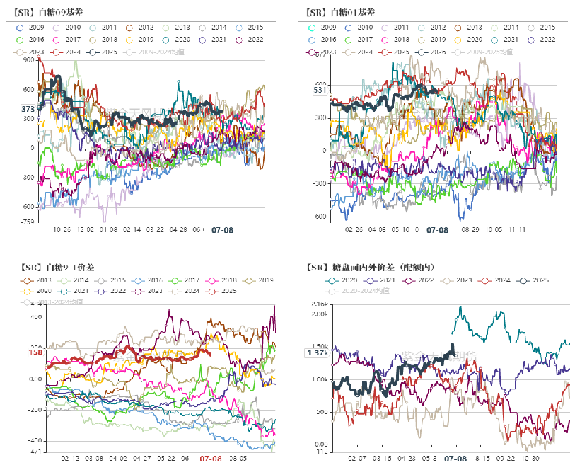 月差方面,9-1价差可能伴随进口糖放量而缩窄,转向反套。