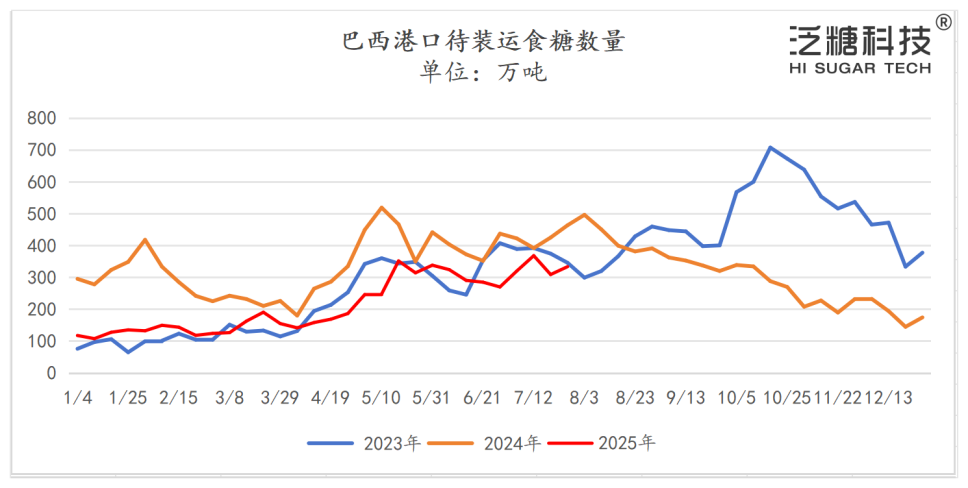 印度:据ISMA数据显示,截至2025年7月中旬,印度已出口了65~70万吨食糖。该协会希望到 2025年9月底总共能出口80万吨。