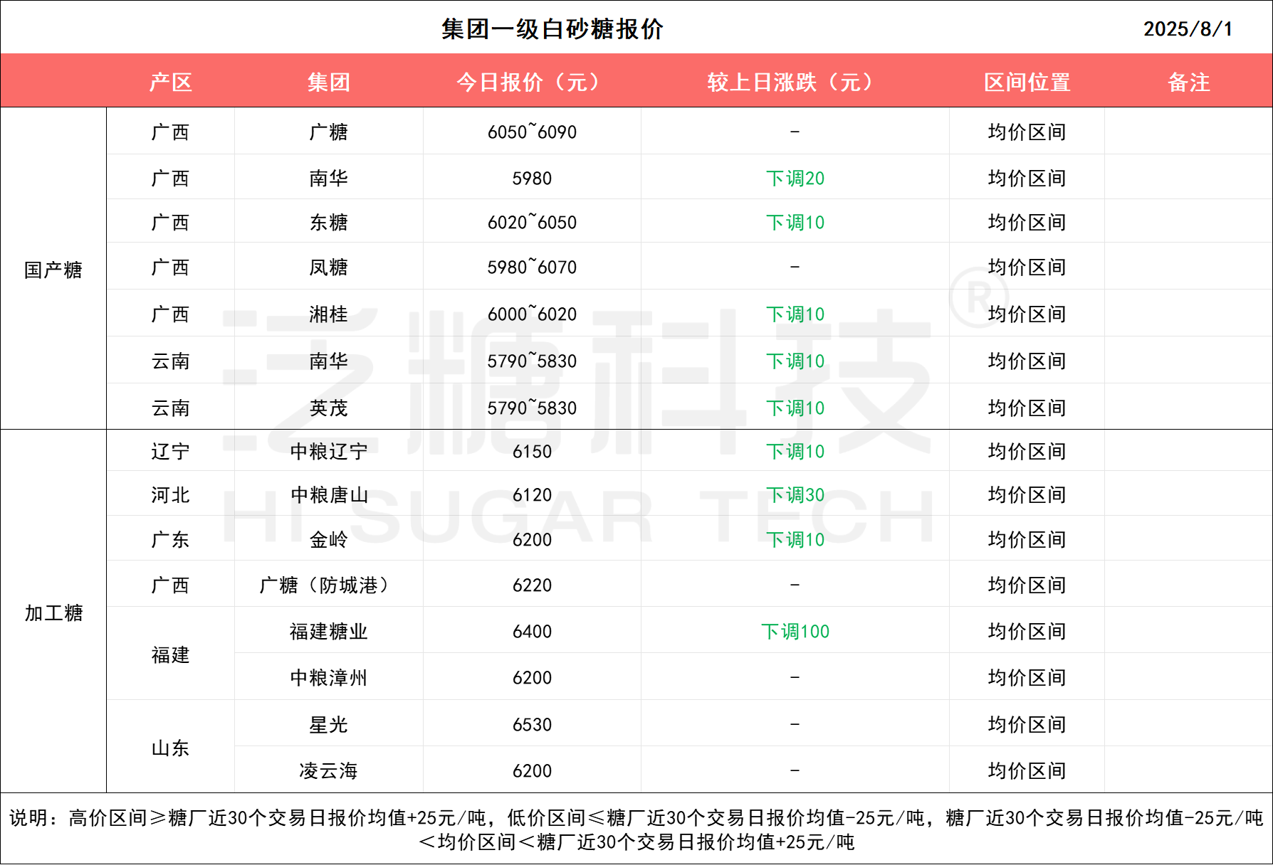 20250801国内制糖集团报价